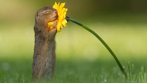 "صورة العمر".. هولندي يرصد لحظة نادرة لسنجاب يستنشق عبق زهرة