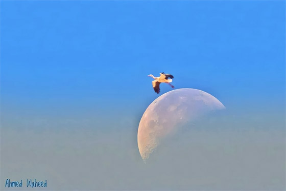 وأشار المصوّر، وهو عضو في الجمعيّة المصريّة لحماية الطبيعة، إلى أن توثيق الكائنات الحيّة ليس كباقي أنواع التصوير، فالكائنات متحرّكة باستمرار، كما "يتغيّر المشهد في كل جزء من الثانية"، بحسب تعبيره. وفي الأعوام اللاحقة التي تبعت ذلك، استطاع المصور توثيق العديد من الطيور مع القمر.