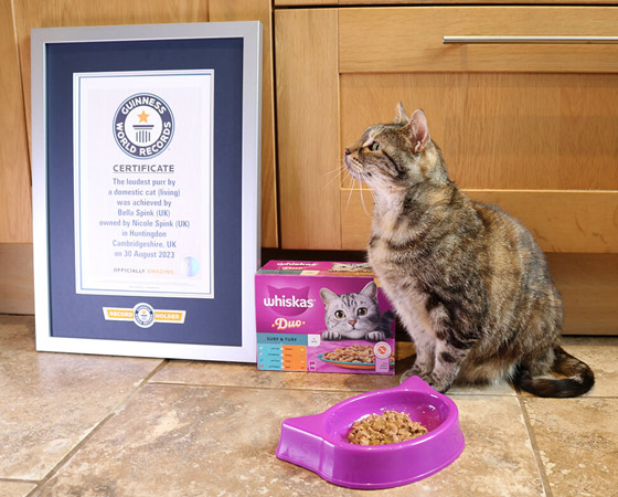 حطمت قطة تبلغ من العمر 14 عامًا الرقم القياسي العالمي في موسوعة غينيس بـ"أعلى صوت خرخرة في العالم". وحققت "بيلا"، من هنتنجدون، كامبريدجشير، خرخرة بلغت 54.6 ديسيبل، وهو ما يعادل حجم الصوت الصادر عن غلاية تغلي. وقالت المالكة الفخورة بقطتها، نيكول سبينك: "أستطيع أن أشعر بسعادة غامرة، لأن بيلا قد حطمت الرقم القياسي العالمي"، مضيفة: "لقد كانت رفيقة عائلتنا لسنوات عديدة، نحن نحبها كثيرًا ونفخر جدًا بإنجازها".