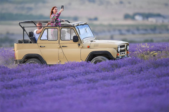 جمعت وكالة روسية صورا توثق تفتح أزهار الخزامى في حقول جمهورية القرم الروسية الواسعة، حيث يعطي اللون الليلكي (البنفسجي) لهذه الزهور الجميلة، راحة نفسية وطمأنية وسلاما لجميع زوار هذه الحقول.