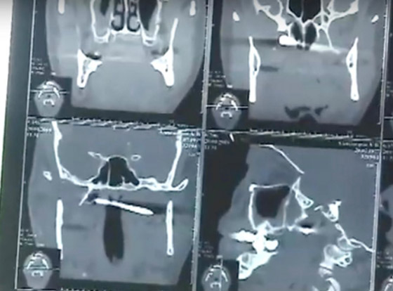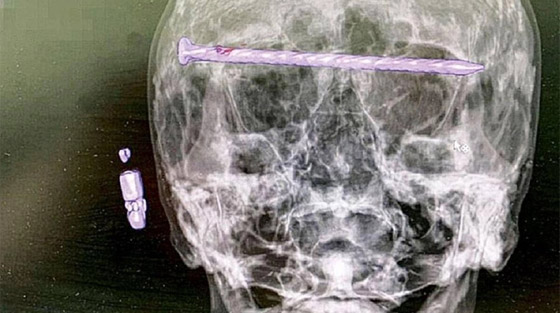 وعند التصوير المقطعي، تبين وجود مسمار طوله 15 سم يمر بالصدغ الأيمن عبر محجر العين إلى الصدغ الأيسر، بينما قال الأطباء إن الوضع ازداد سوءا بسبب تلف الجافية في الدماغ والضغط على مقلة العين.