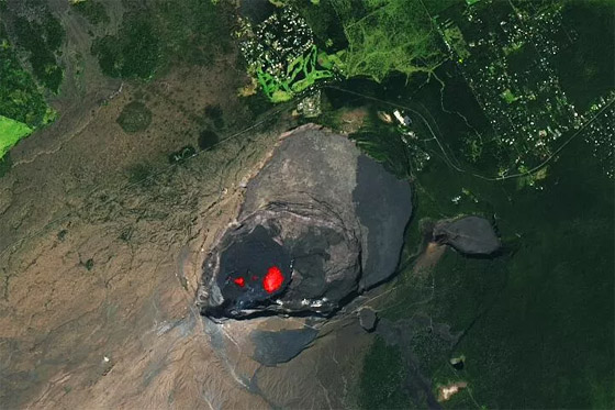 - صورة التقطتها "ناسا" لتدفق الحمم البركانية على قمة كيلاويا في جزر هاواي.