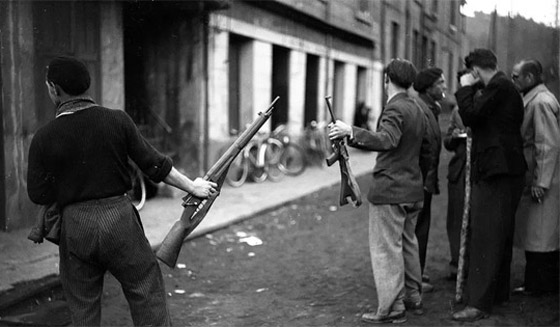 صورة لعمال مناجم فرنسيين مسلحين باحتجاجات العام 1948