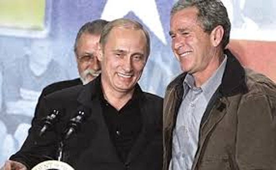 بعد كلينتون جاء جورج بوش الابن. بوش تحدث عن بوتين وكانا التقيا في مناسبات عديدة قائلا: "نظرت في عيني هذا الرجل ورأيت أنه رجل مستقيم ويستحق منا أن نصدقه. كان لدينا معه حوار جيد جدا. وكنت قادرا على الشعور بروحه. جلب هذا الرجل الأفضل لبلده".