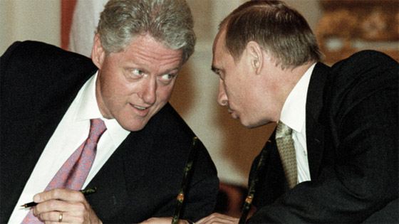 بوتين التقي بالرئيس الأمريكي بيل كلينتون في موسكو في 3 يونيو عام 2000. جمعتهما فترة تعاون قصيرة بسبب انتهاء ولاية كلينتون بعد عام واحد. في تلك الفترة القصيرة، وصف بيل كلينتون الرئيس الروسي فلاديمير بوتين بأنه زعيم قوي وذكي وأنه لم يخالف الوعود والاتفاقيات.