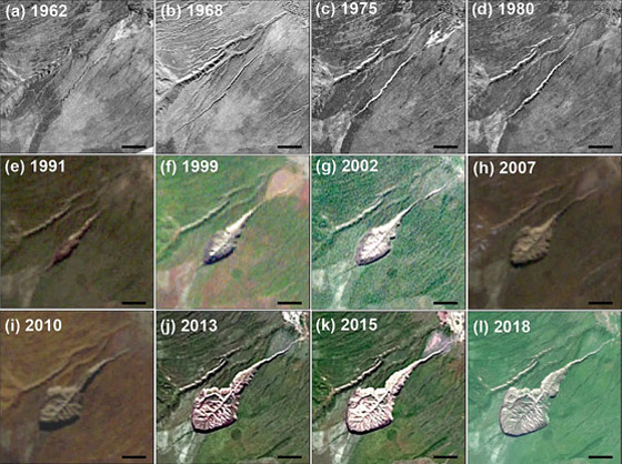 وقال ميكايليدس: "هناك الكثير مما لا نعرفه عن هذه الحلقة المرتدة وكيف ستتطور بالضرورة، ولكن هناك إمكانية لحدوث تغييرات كبيرة للغاية في نظام المناخ على مدى فترات زمنية جيولوجية سريعة للغاية". وفي دراسة نشرت في مجلة جيومورفولوجيا في يونيو، استخدم الباحثون بيانات الأقمار الصناعية والطائرات بدون طيار لبناء نماذج ثلاثية الأبعاد للهبوط الهائل وحساب توسعه بمرور الوقت.